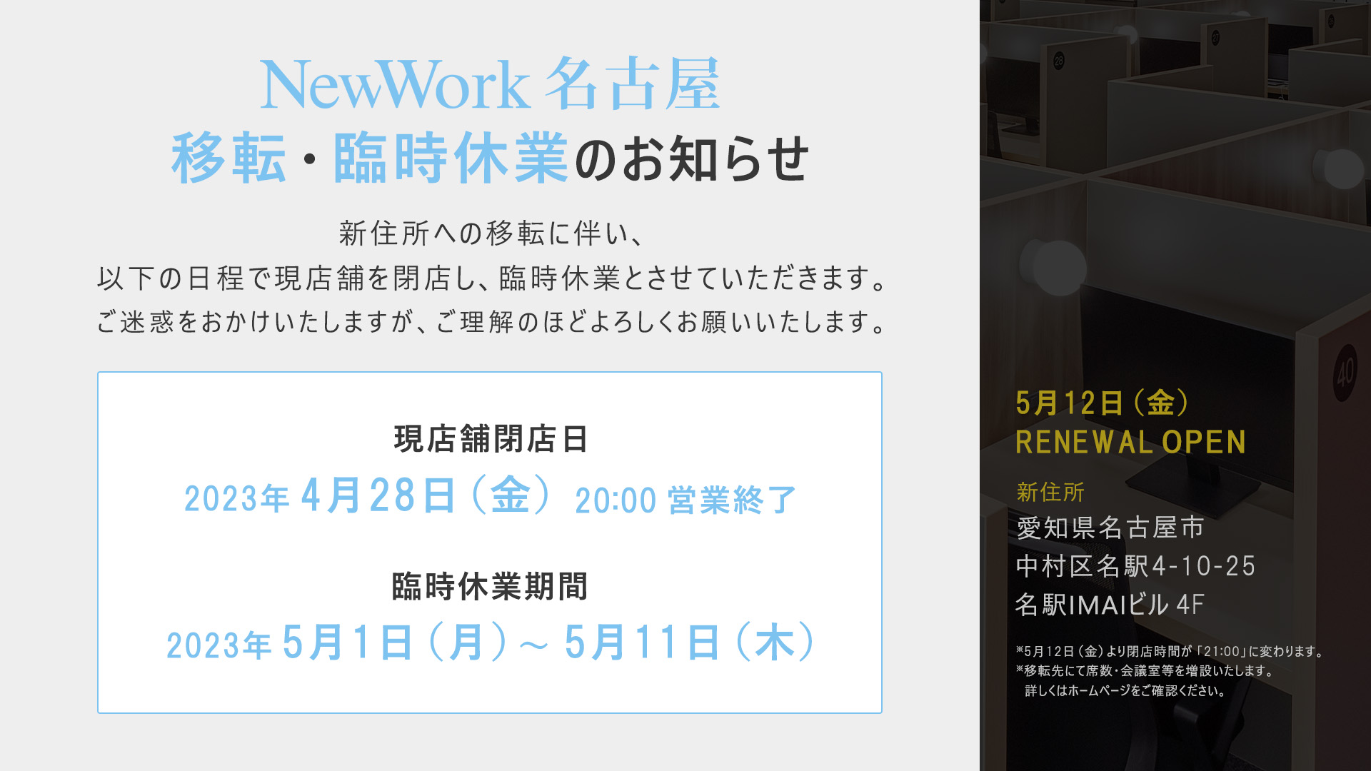 | 2025.12.09 | 直営店 | 『NewWork 小田原』営業時間延長および利用規則改定のお知らせ |
