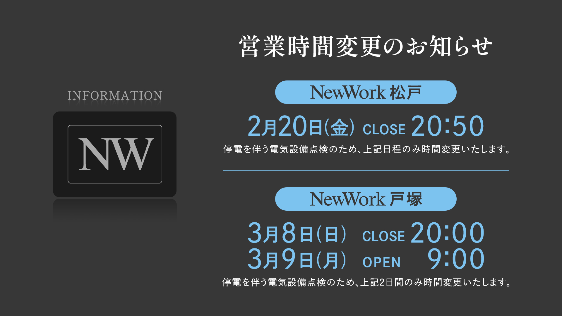 | 2026.02.17 | 直営店 | 着席個室ブース増設のお知らせ[NW広島・NW鹿児島中央・NW水戸] |