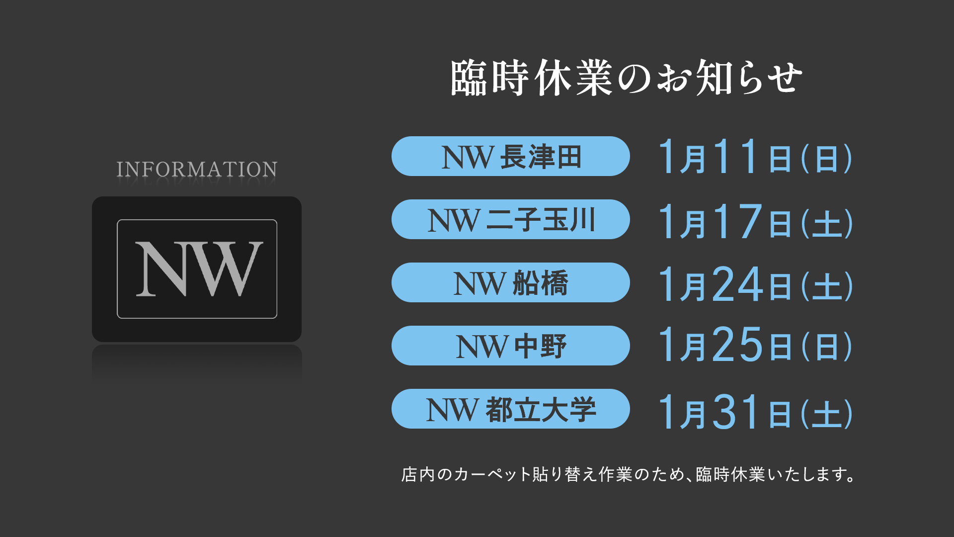 | 2025.12.10 | 直営店 | 2026年1月 営業時間臨時変更および臨時休業のお知らせ |