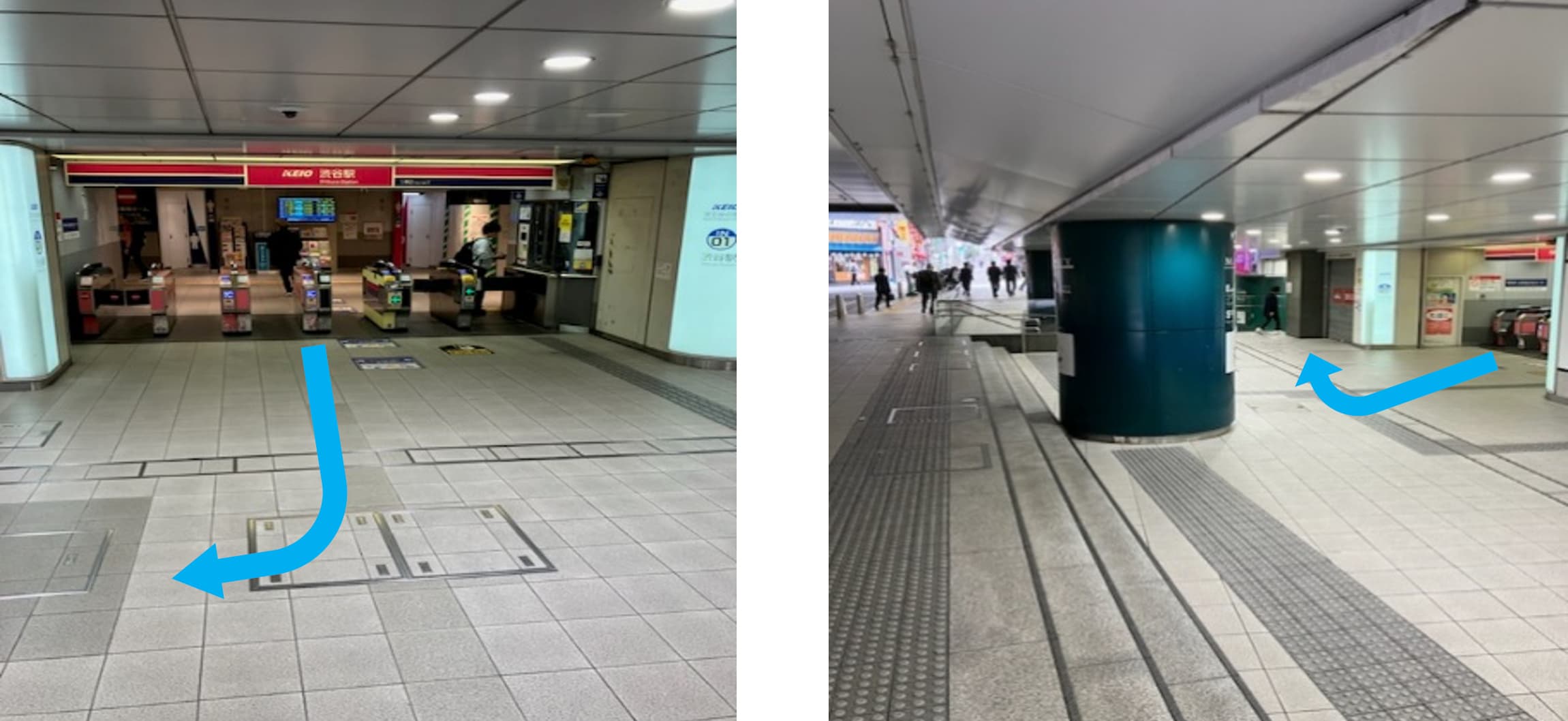 1. Exit the west ticket gate at Shibuya Station on the Keio Inokashira Line and turn right.