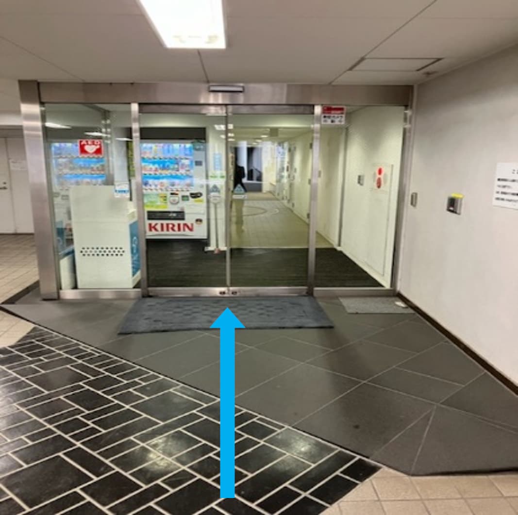 6. Enter the building through the automatic doors and take the elevator to the 7th floor.
