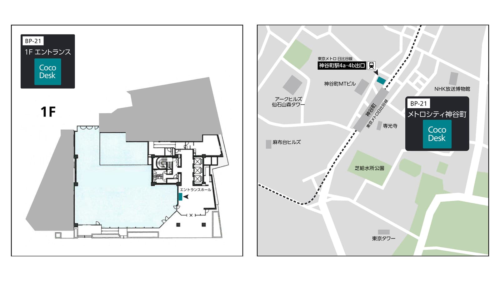 Nearby Station: Tokyo Metro Hibiya Line, Kamiyacho Station, Exits 4a & 4b, 1 min. walk / Toei Mita Line, Onarimon Station, 8 min. walk
