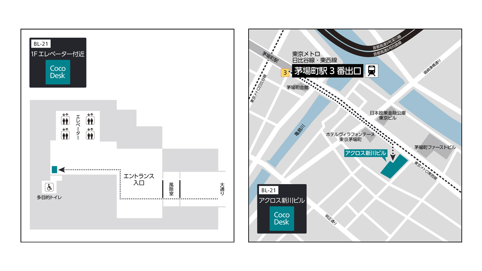 Nearby Station: Tokyo Metro Tozai Line, Hibiya Line, Kayabacho Station, 5 min. walk / Tokyo Metro Hanzomon Line, Suitengumae Station, 7 min. walk
