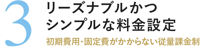 基本料金 月額 30,000円 / 1ライセンス 基本料金 従量料金なし |