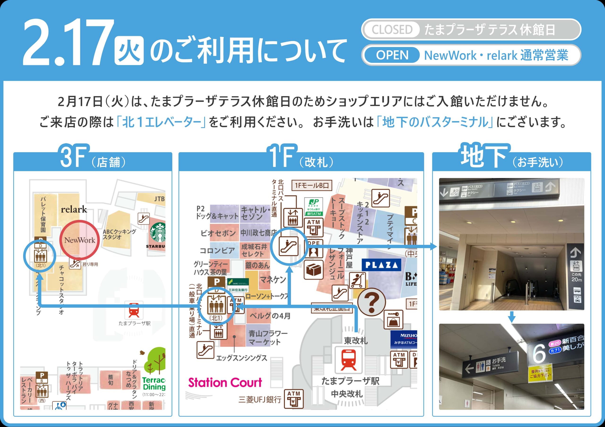 2026年2月17日(火)は、たまプラーザ テラス休館日のためショップエリアは入館不可となりご来店ルートが限られます。