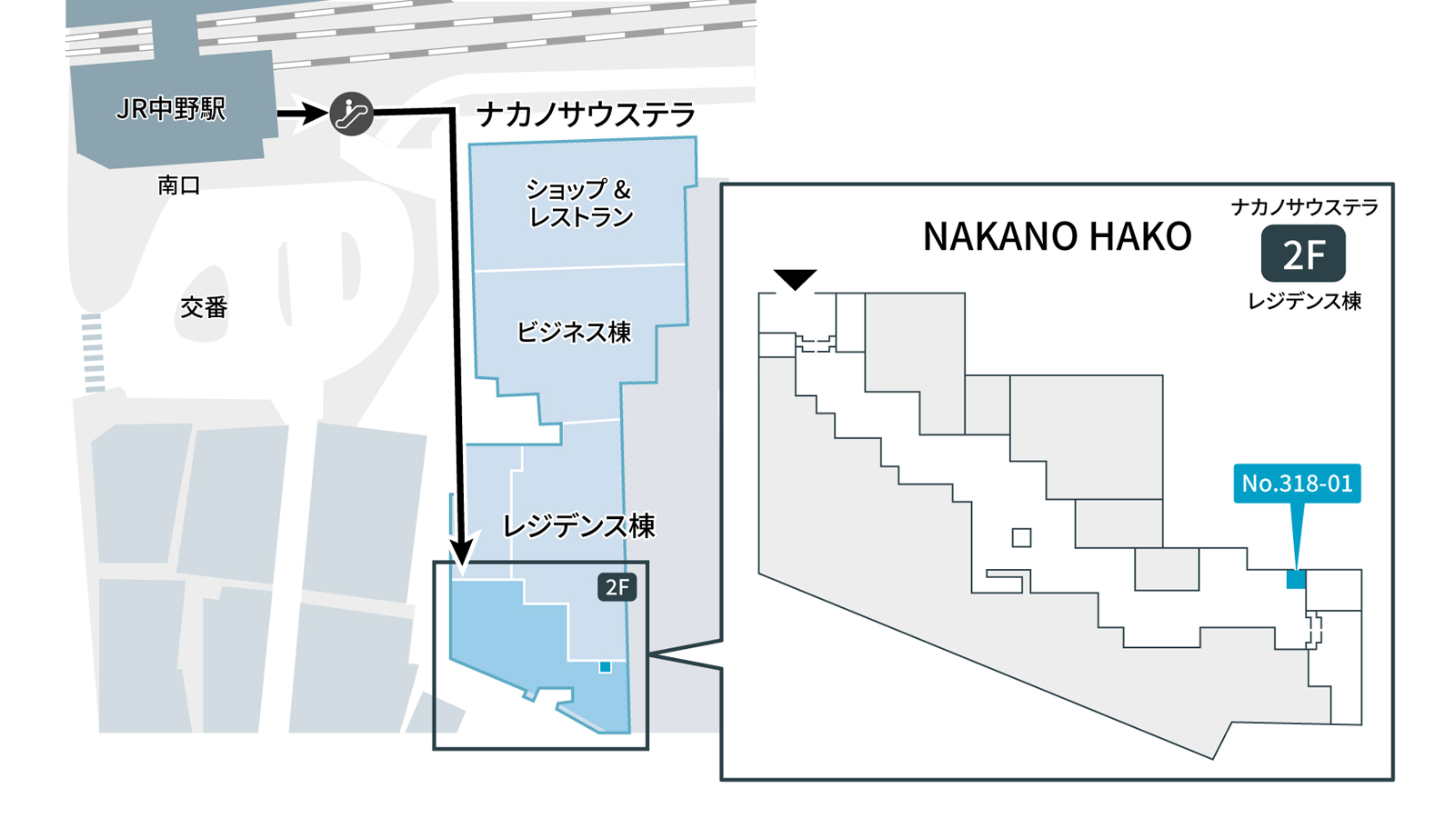 〒164-0001 東京都中野区中野2-24-9 NAKANO HAKO 2F